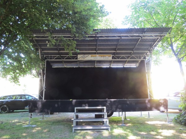 Durch die Zusammenarbeit mit der Fa. FS Showtechnik besteht seit Sommer 2016 die Möglichkeit einen kompakten Bühnenanhänger (BxTxH: ca. 5,60m x 3,80m x 2,30m hinten, 3,40m vorn über dem Bühnenboden) zu leihen. - selbstverständlich gern auch mit kompletter Technik!